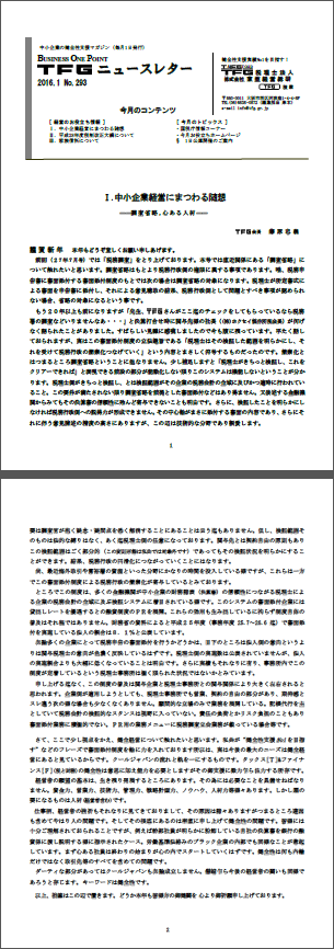 以て中小企業の成長発展を願うからに他なりません。もとより斯かる微妙な側面もある書面添付につきましては、TFGとしても慎重な展開を致さざるを得ません。
