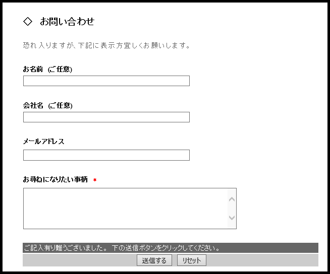 ↓なお、問い合せフォームの内容は次のようになっています。 |